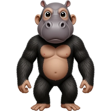 Custom iOS emoji with no blur and a white background. The topic of the emoji is "hippo with chimpanzee body". It MUST maintain the general apple iOS emoji style. emoji