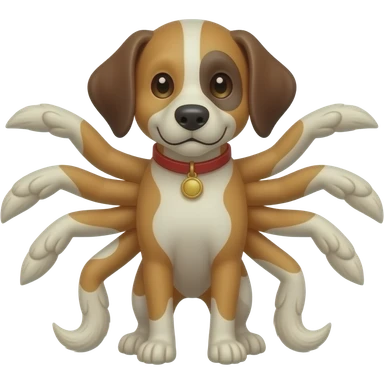 Custom iOS emoji with no blur and a white background. The topic of the emoji is "dog with 8 legs and 8 tails". It MUST maintain the general apple iOS emoji style. emoji