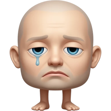 Custom iOS emoji with no blur and a white background. The topic of the emoji is "head with legs and eyes. Head should have no hair and should be sad". It MUST maintain the general apple iOS emoji style. emoji