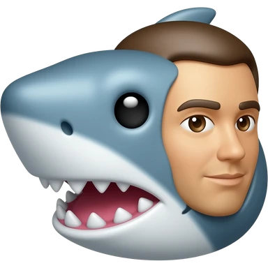 Custom iOS emoji with no blur and a white background. The topic of the emoji is "shark with human head". It MUST maintain the general apple iOS emoji style. emoji