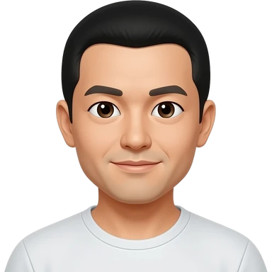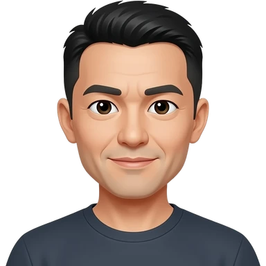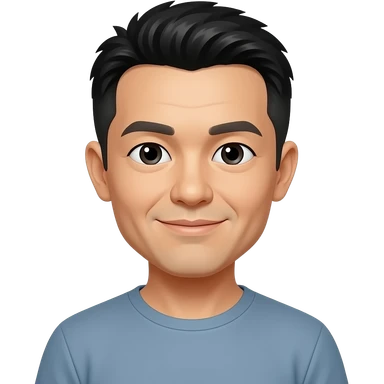 a man with a bowl cut brown squar glasses, a orange jacket emoji