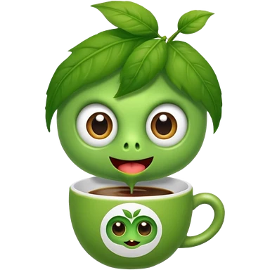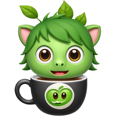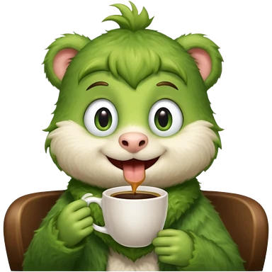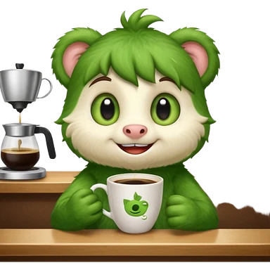 Cut the Rope's Om Nome in barista's suite with a cup of cofee emoji | AI Emoji Generator