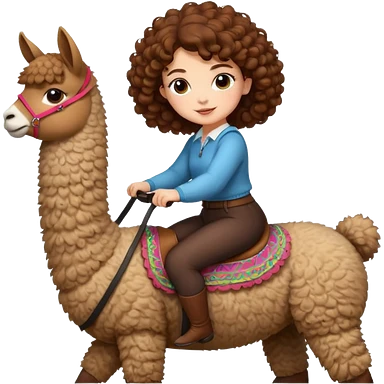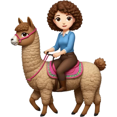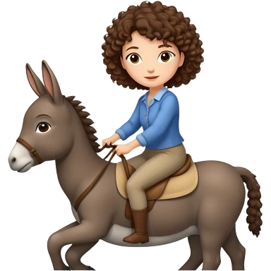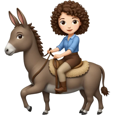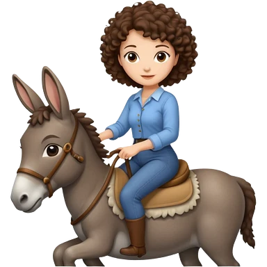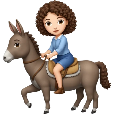 cute woman short tight curly brown hair riding an gentle donkey emoji