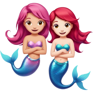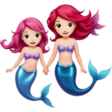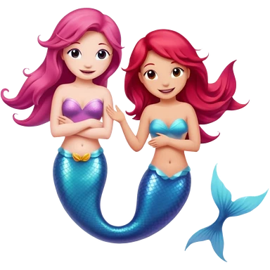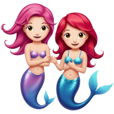 Cute iOS-style emoji of a pastel pink dolphin and a red-haired mermaid, smiling at each other. Simple vector emoji design, bold outlines, soft gradients, glossy look, centered, white background. emoji