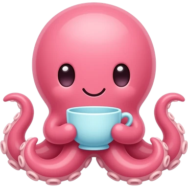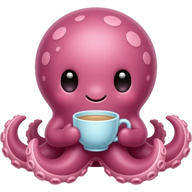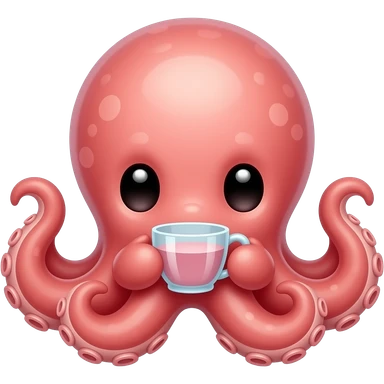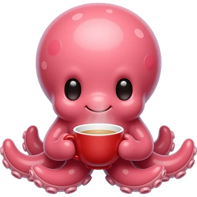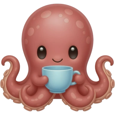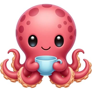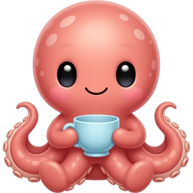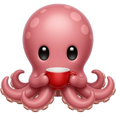 Cute octopus sitting low, holding a red teacup, front-facing whimsical pose emoji
