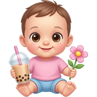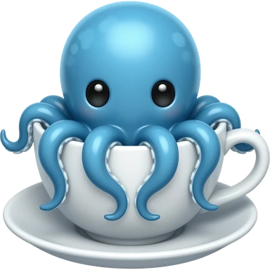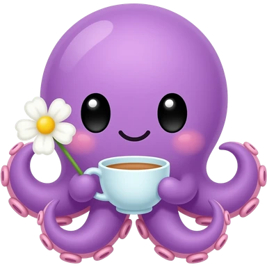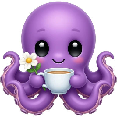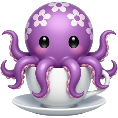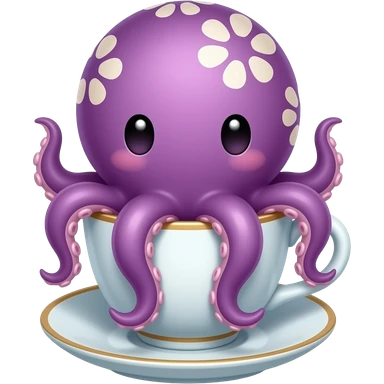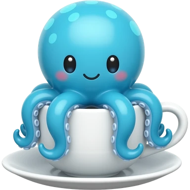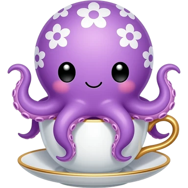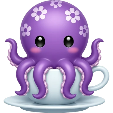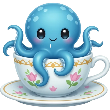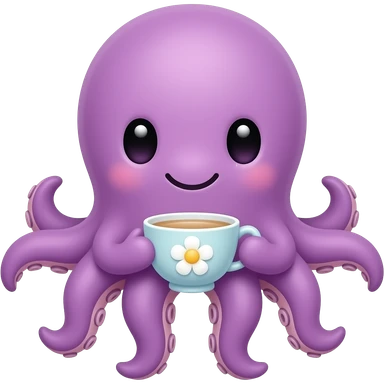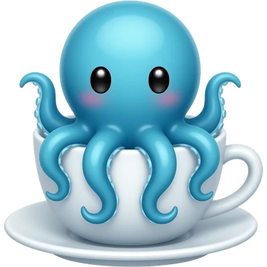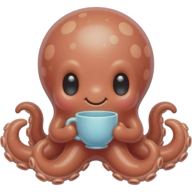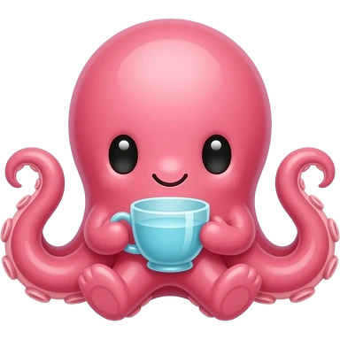 Cute octopus sitting low, holding a glass teacup, front-facing whimsical pose emoji