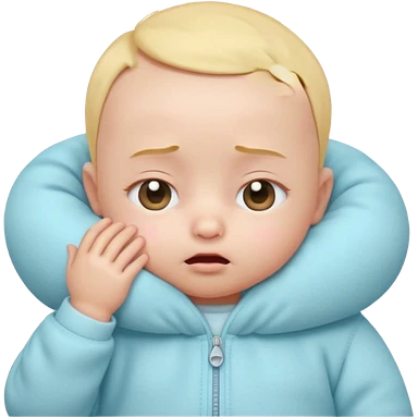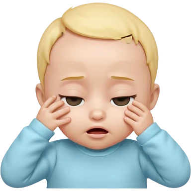 Cute 3D baby emoji, rubbing eyes, sleepy expression, short fine baby hair, soft pastel colors, clean white background emoji | AI Emoji Generator