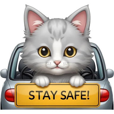 Cute kitten with a sign that says, Stay safe driving! emoji