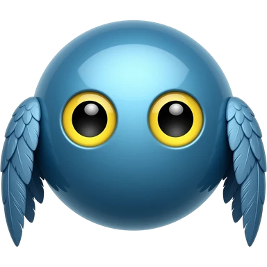 Cute metalic blue sphere with yellow eyes and black pupils with 2 bird wings at the sides emoji