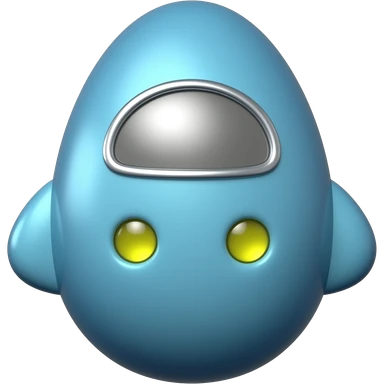 Cute metal blue egg with spaceship window at the front and 2 yellow eyes at the sides emoji