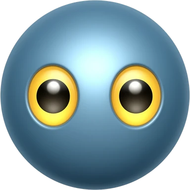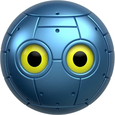 Cute spaceship themed metal blue ball with yellow eyes and black pupils emoji