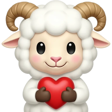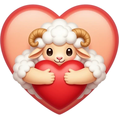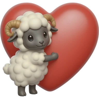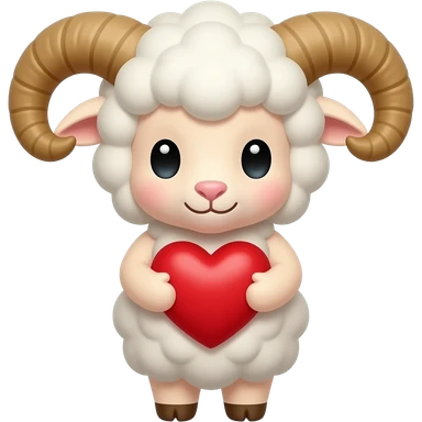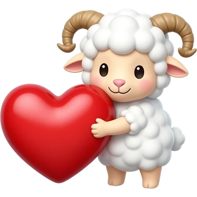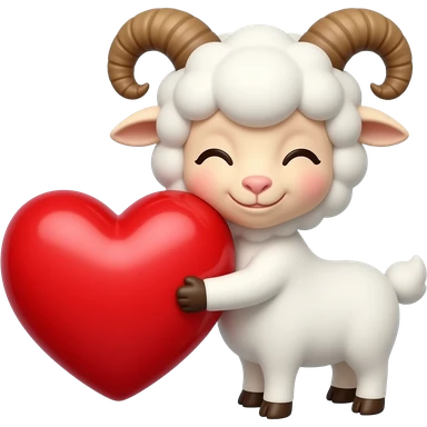 Cute ram with horns emoji hugging a large red heart, close-up emoji