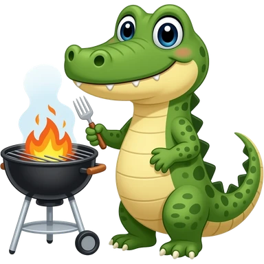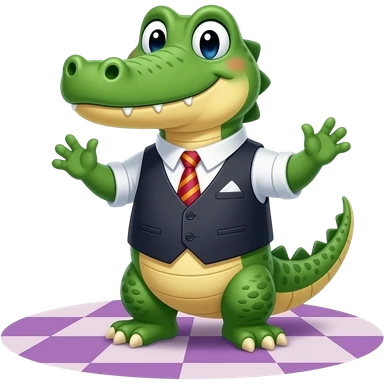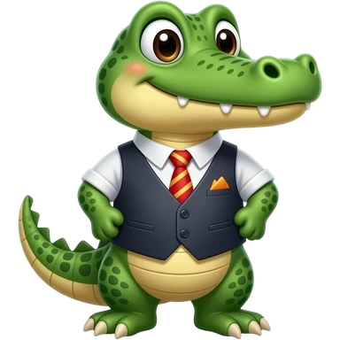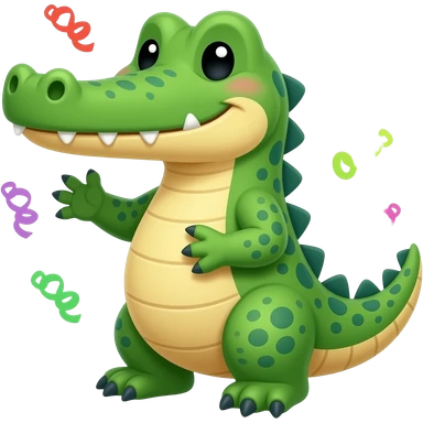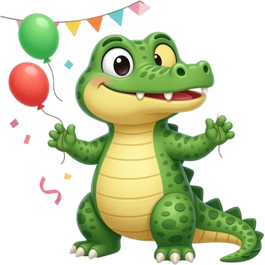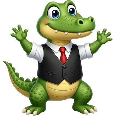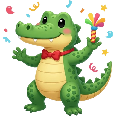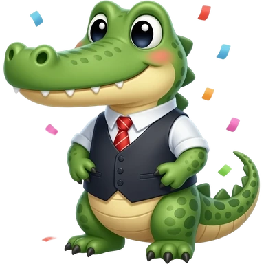 Cute alligator wearing a vest and tie at a party with confetti emoji