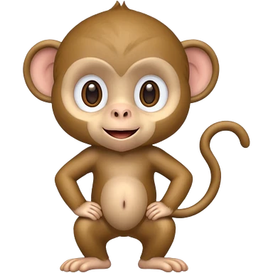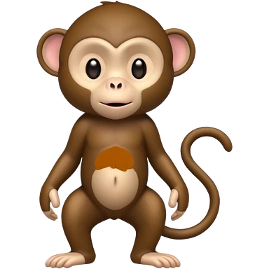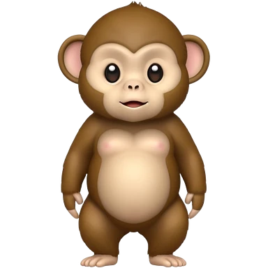 Cute 2.5D shading with fur and dark brown color Graphics. Front View Standing chubby Cute Monkey. For kids. emoji