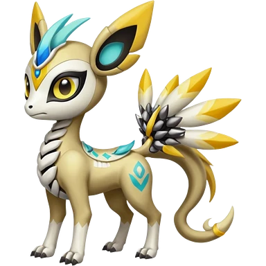 Cute Baby Colorful Shiny Tribal Skeletal masked armored Meloetta-Silvally-Solgaleo-Raikou-Pokémon-Digimon-Fakémon-fusion-hybrid-creature, full body emoji