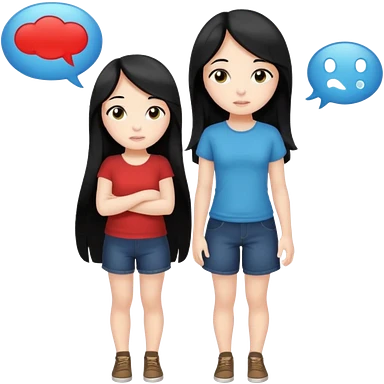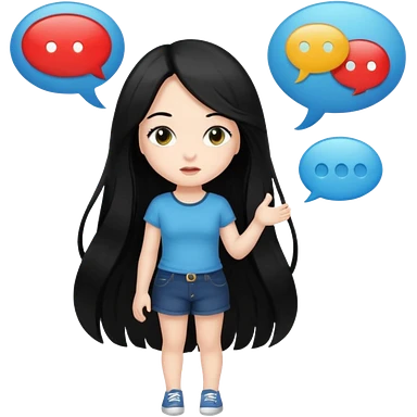 cute girl full body with long black hair with speech bubbles not have money emoji