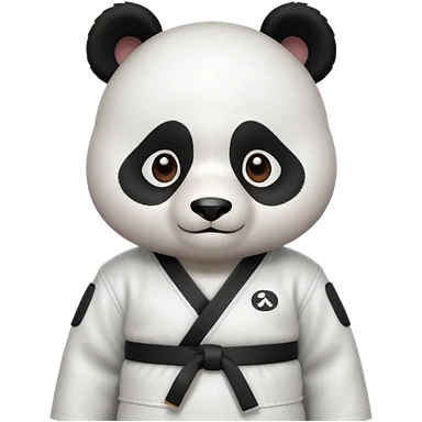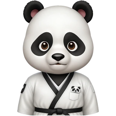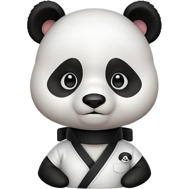 cute panda doing karate portrait, head and shoulders only, wearing white gi uniform, black belt visible, determined face, 3D cartoon, mobile game icon style, clean background, no text, no watermark emoji