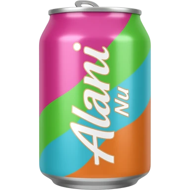 cute bright pink/bright green/bright blue/ bright orange, summery can that says Alani Nu emoji