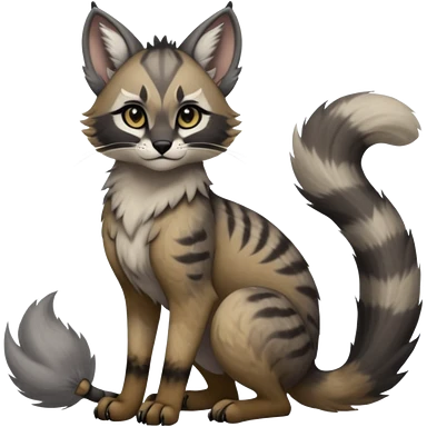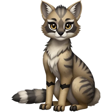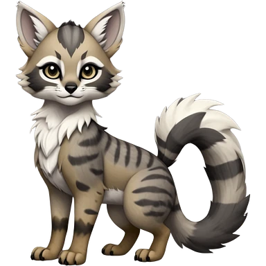Cute kawaii cool edgy badass fantasy-caracal-civet-genet-sergal-vernid-Gryphon-Cacomistle-Trico-oncilla-animal-Fakémon-hybrid-fursona (full body), facial markings, (realism style) emoji