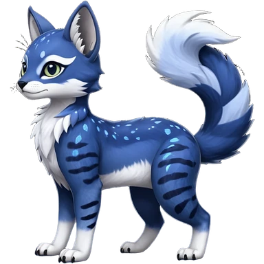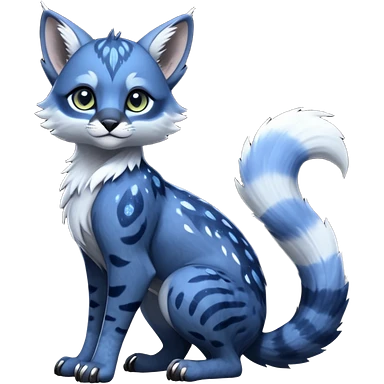 Cute kawaii cool edgy badass glossy midnight-blue fur with silver starlight dusting fantasy-caracal-civet-genet-sergal-vernid-Gryphon-Cacomistle-Trico-oncilla-animal-Fakémon-hybrid-fursona (full body), facial markings, (realism style) emoji