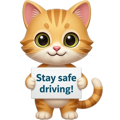 Cute Blonde kitten with a sign that says, Stay safe driving! emoji