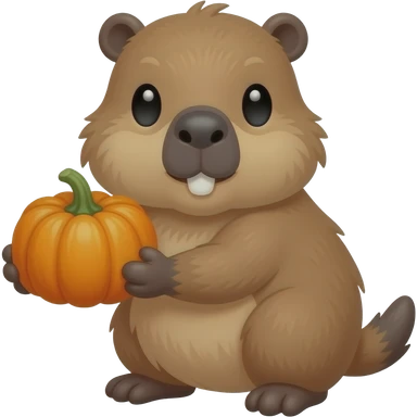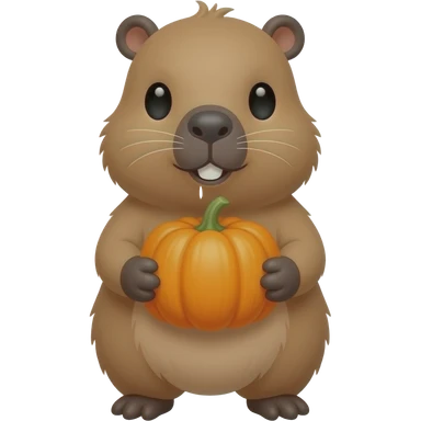 cute capybara holding pumpkin emoji