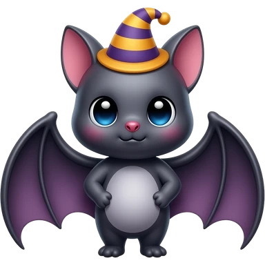 cute shy bat with hat emoji
