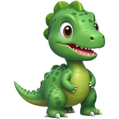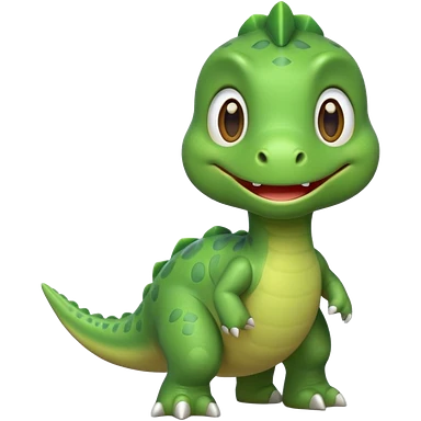 Cute green dinosaur emoji with round body, big eyes, small arms, soft shadows, smooth outlines, glossy finish, friendly smile, simple flat design, high-detail yet minimal style, perfect for emoji set, transparent background emoji
