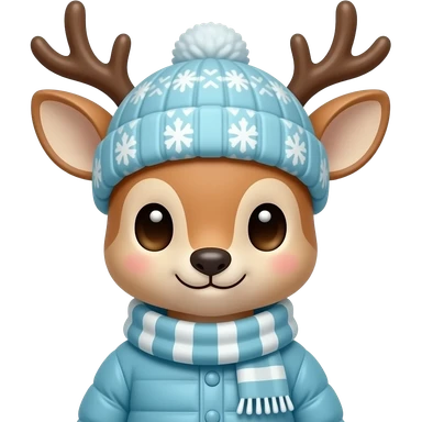 cute Deer wearing Winter cloth , cap, closeup bust size emoji