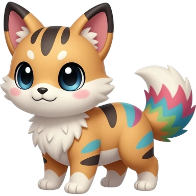 Cute with big black eyes, furry, realistic beautiful chubby Colorful Skilled Adept Graceful Asian Painted Meloetta-Minccino-Absol-Emolga-Pachirisu-fusion-hybrid-creature (full body) emoji