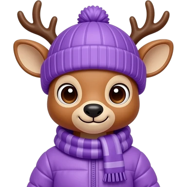 cute Deer wearing purple Winter cloth , cap, closeup bust size emoji