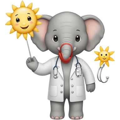 Cute elephant in doctor’s uniform bring ray of sunshine with words: hoop jy voel gou-gou beter emoji