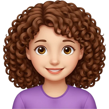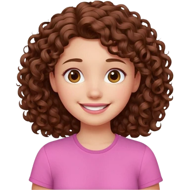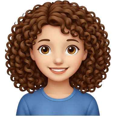 cute brown haired girl with curly hair and bright smile emoji