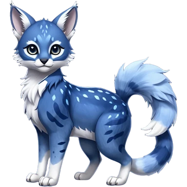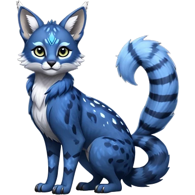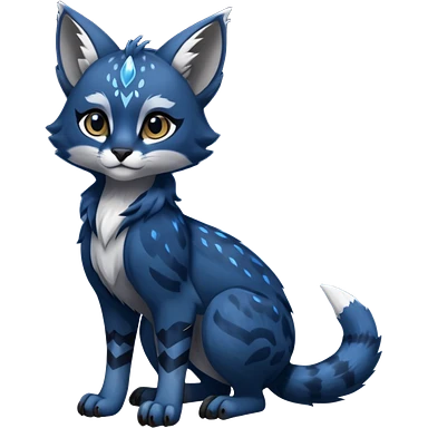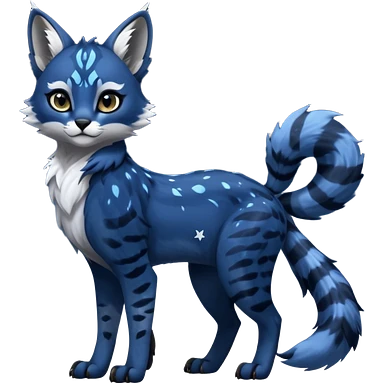 Cute kawaii cool edgy badass glossy midnight-blue fur with silver starlight dusting fantasy-caracal-civet-genet-sergal-vernid-Gryphon-Cacomistle-Trico-oncilla-animal-Fakémon-hybrid-fursona (full body), facial markings, (realism style) emoji