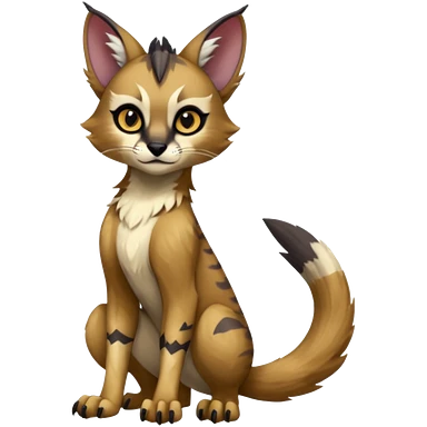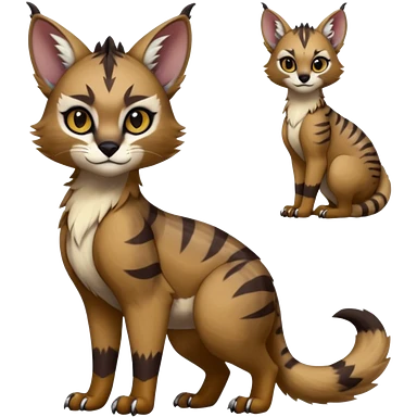 Cute kawaii cool edgy badass fantasy-caracal-civet-genet-sergal-vernid-Gryphon-Cacomistle-Trico-oncilla-animal-Fakémon-hybrid-fursona (full body), facial markings, (realism style) emoji