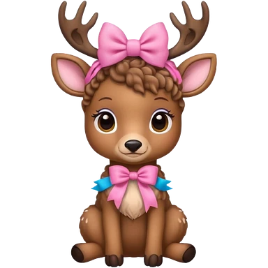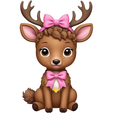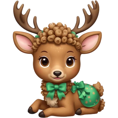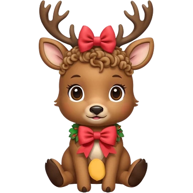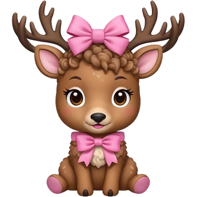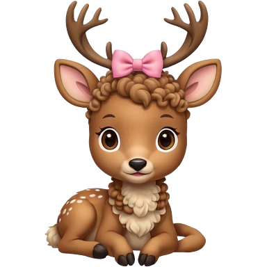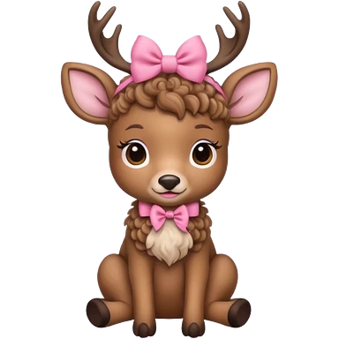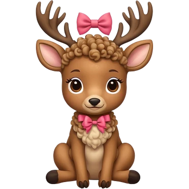 cute deer with curly fur, sitting down, wearing a bow on its head. emoji