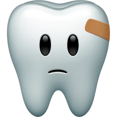 Cute tooth character with a sad face, small bandage on the side, cracked top corner emoji