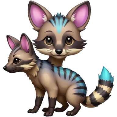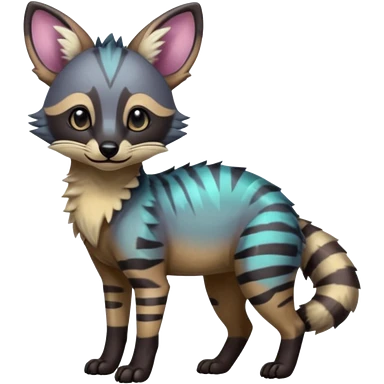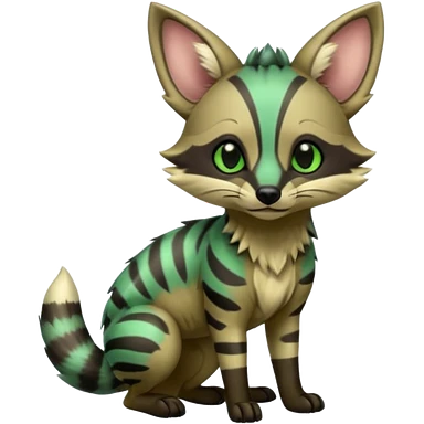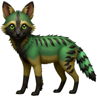 Cute adorable kawai Shiny Green Colorful Dusky Dark Gloomy Glossy Aardwolf-Genet-Bobcat-fusion-animal-hybrid-creature, full bodyemoji