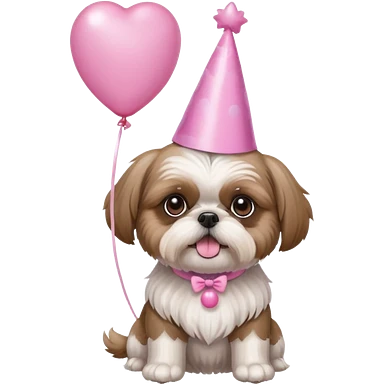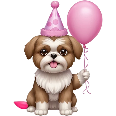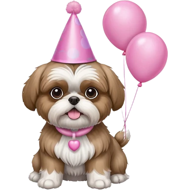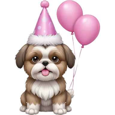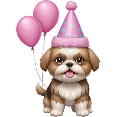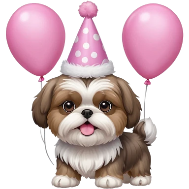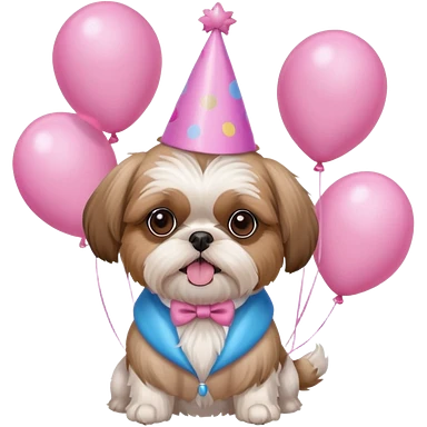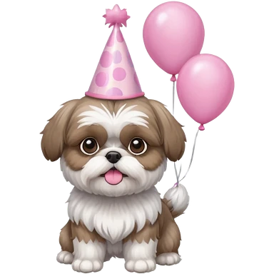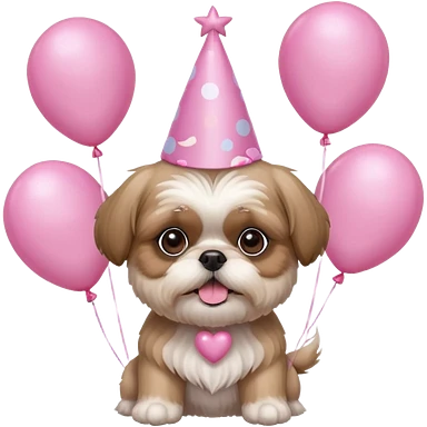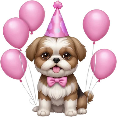 cute shih tzu hold a few cute pink balloons with pink birthday hat emoji