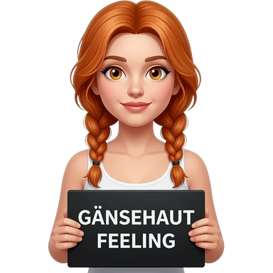 sexy girl with long ginger braids and ginger eyes wearing a white tanktop is holding a black sign with GÄNSEHAUT FEELING written on it emoji