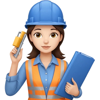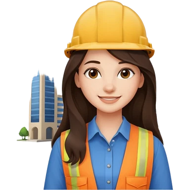 female architect brown hair blue eyes with a helmet emoji