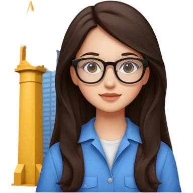 girl architect - brunette - 20 years old cute pose - long hair girl no eye glasses. pretty girl emoji