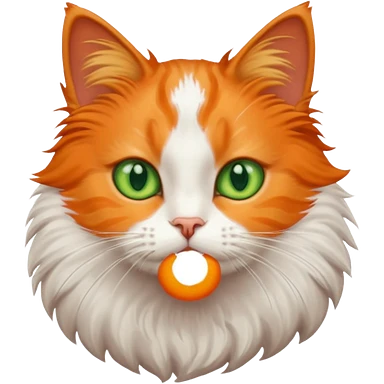 Cute emoji-style white cat holding a red rose in its mouth, big round eyes, fluffy fur, clean mascot style, centered, transparent background, 1:1 ratio. emoji