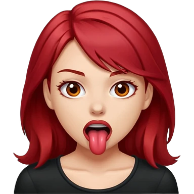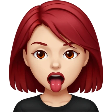 Dark red haired girl biting her lip sexually and aggressively emoji