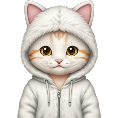 Cute Baby cat, white Colored, wearing a brown hoodie emoji