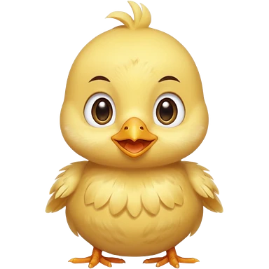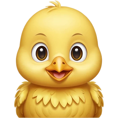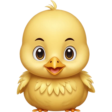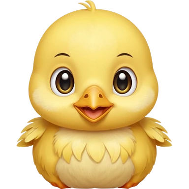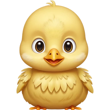 Cute baby chick named Lex, smiling with big shiny eyes, soft yellow feathers, round head, very adorable emoji style emoji | AI Emoji Generator