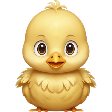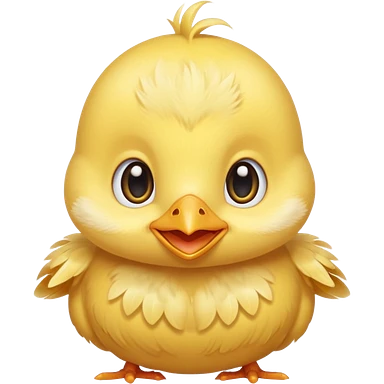Cute baby chick named Lex, smiling with big shiny eyes, soft yellow feathers, round head, very adorable emoji style emoji