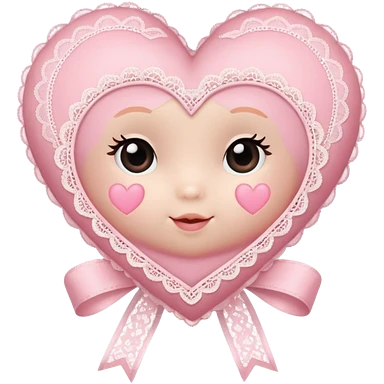 cute baby pink peach colored heart with lace trimming and with a lace ribbon emoji