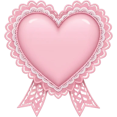 cute baby pink colored heart with lace trimming and with a lace ribbon in the front, on the top left, tilted a bit emoji