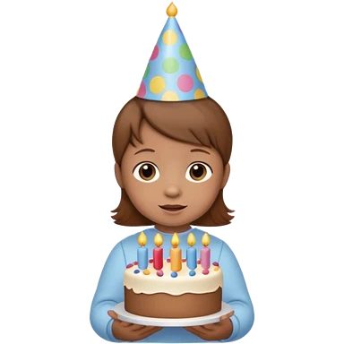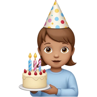 with brown hair cute baby wearing birthday hat with birthday cake emoji